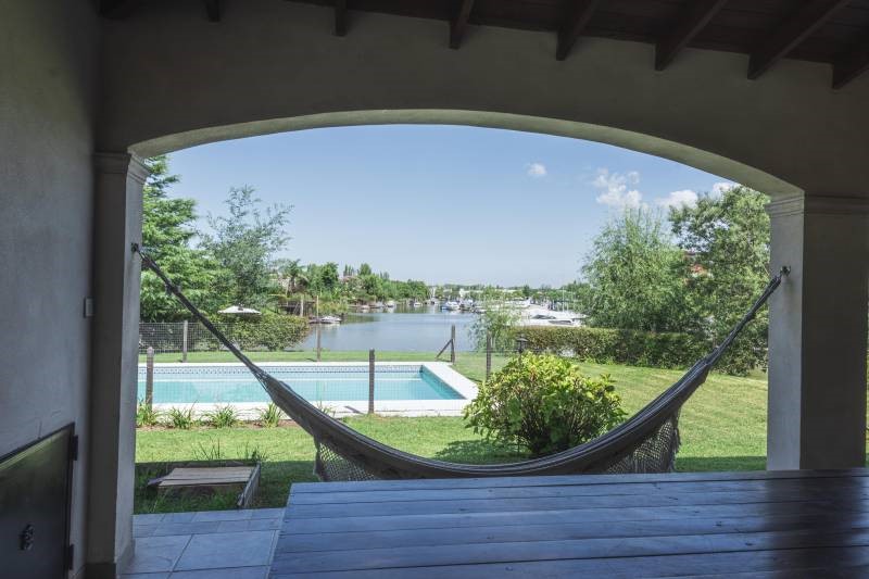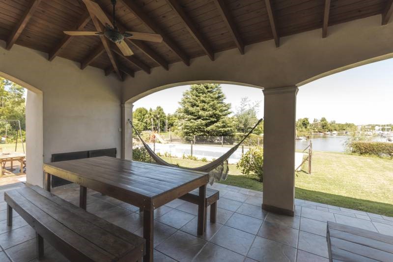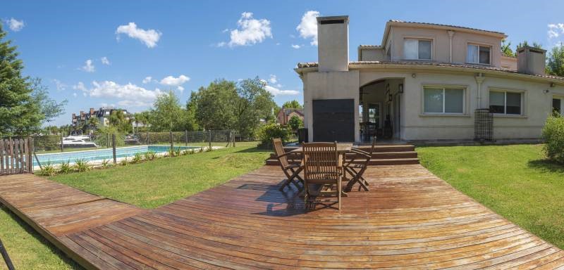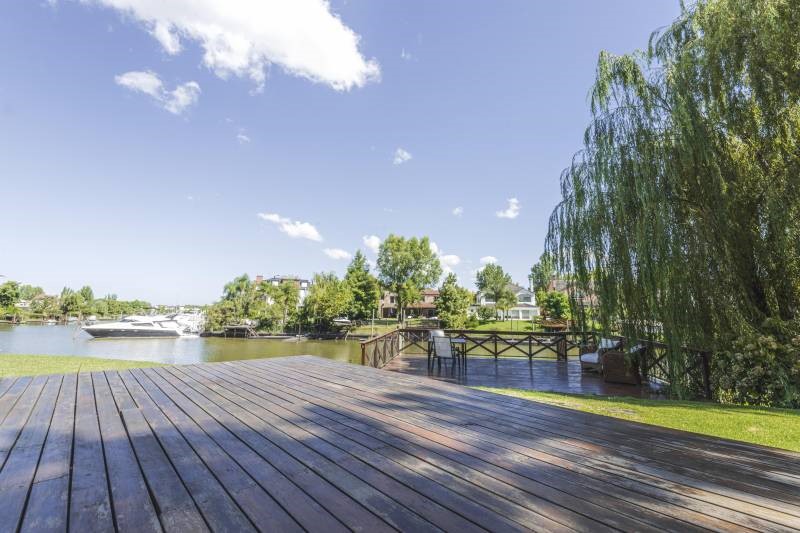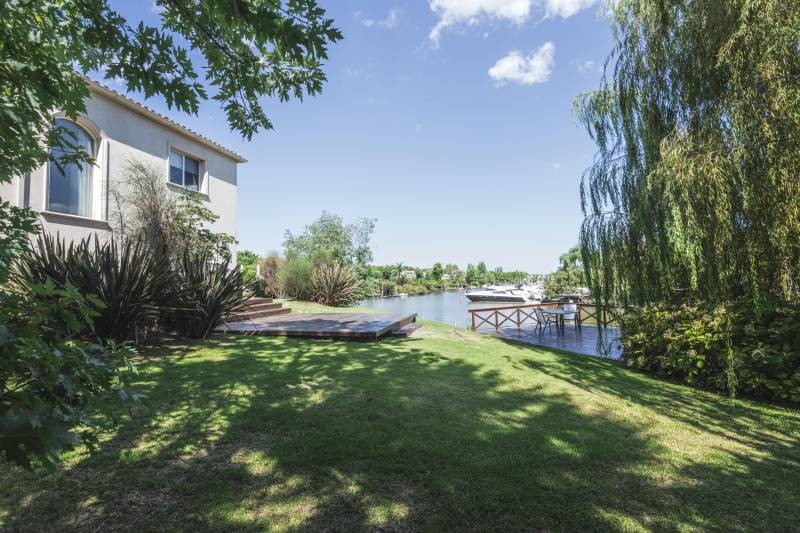 Increíble casa al RIO sobre lote de 3000m2 con 100m de costa donde podrían amarrar mas de un barco de buen calado, lo que la distingue de otras casas al rio Se trata de una casa de estilo clásico en muy buenas condiciones de mantenimiento, con excelente vista y luminosidad. Ubicada en un cul de sac muy privado. Todos los ambientes con excelentes vistas. Planta baja. Hall de entrada Living y Comedor separado con pisos calcáreos salida a la galería. Estar. Suite con baño o escritorio. Toilette. Cocina con comedor diario. Lavadero. Dependencia. Garage Planta alta. Suite junior con baño. Dos dormitorios que comparten un baño. Suite principal con estar intimo o escritorio y baño Galeria con parrilla. Pileta. Deck. Muelle de 50m2. Posibilidad de amarra para dos barcos de buen tamaño Disponible para alquiler temporal Precio mensual por meses de temporada: usd10.000.-