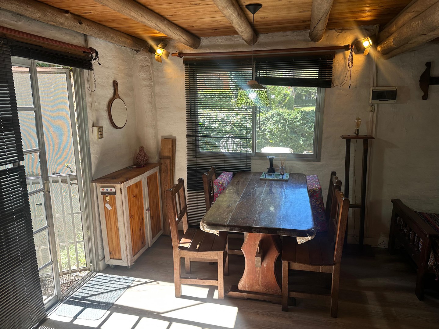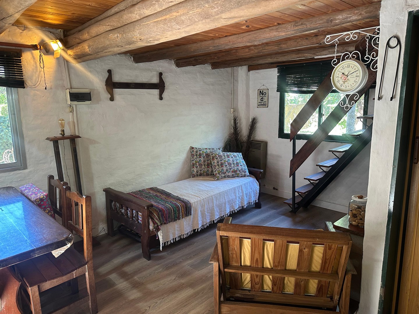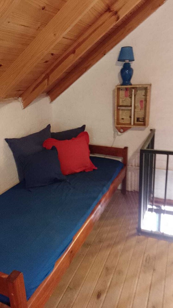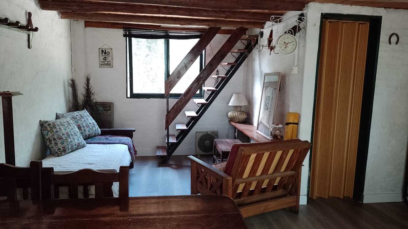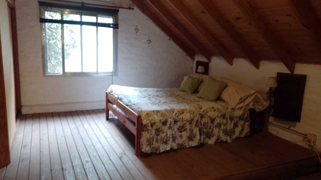 CASA tipo cabaña en COUNTRY MI CAMPO! A solo 40 minutos de Capital, esta casa ideal en un entorno arbolado y natural, con seguridad y muchas actividades para disfrutar, ideal para vivir todo el año o para usarlo los fines de semana. La casa se alquila con muebles ALQUILER + expensas + Servicios Tiene living comedor con cocina integrada con barra desayunadora. En Planta alta ( uno con cama matrimonial y otras dos camas ) en ambiente unico, divisible Baño completo en PB con ducha. Calefaccion por tiro balanceado Galeria con parrilla El Country tiene PILETA, Vestuarios, Cancha de Tenis, Cancha de Padel, Cancha de futbol