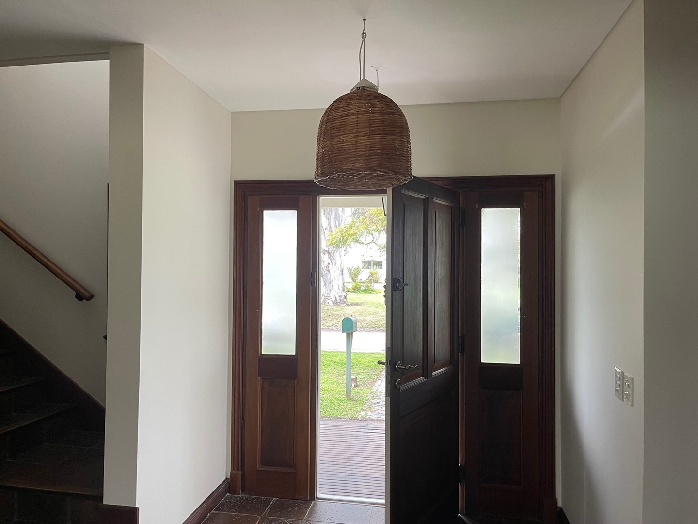 Muy linda casa en alquiler en El Talar de Pacheco sobre un lote muy luminoso de 1700 metros. PB: living con hogar, comedor principal , cocina de gran tamaño , lavadero, escritorio, toilette de recepción, suite principal con dos vestidores, gran family/quincho. PA: Hall intimo muy amplio, suite junior con su baño completo y dos dormitorios más que comparten un baño. cuarto de servicio al cual se accede por una escalera desde el lavadero. Gran jardín al Noroeste, pileta, galerías, baño de pileta, garage cubierto para dos autos.