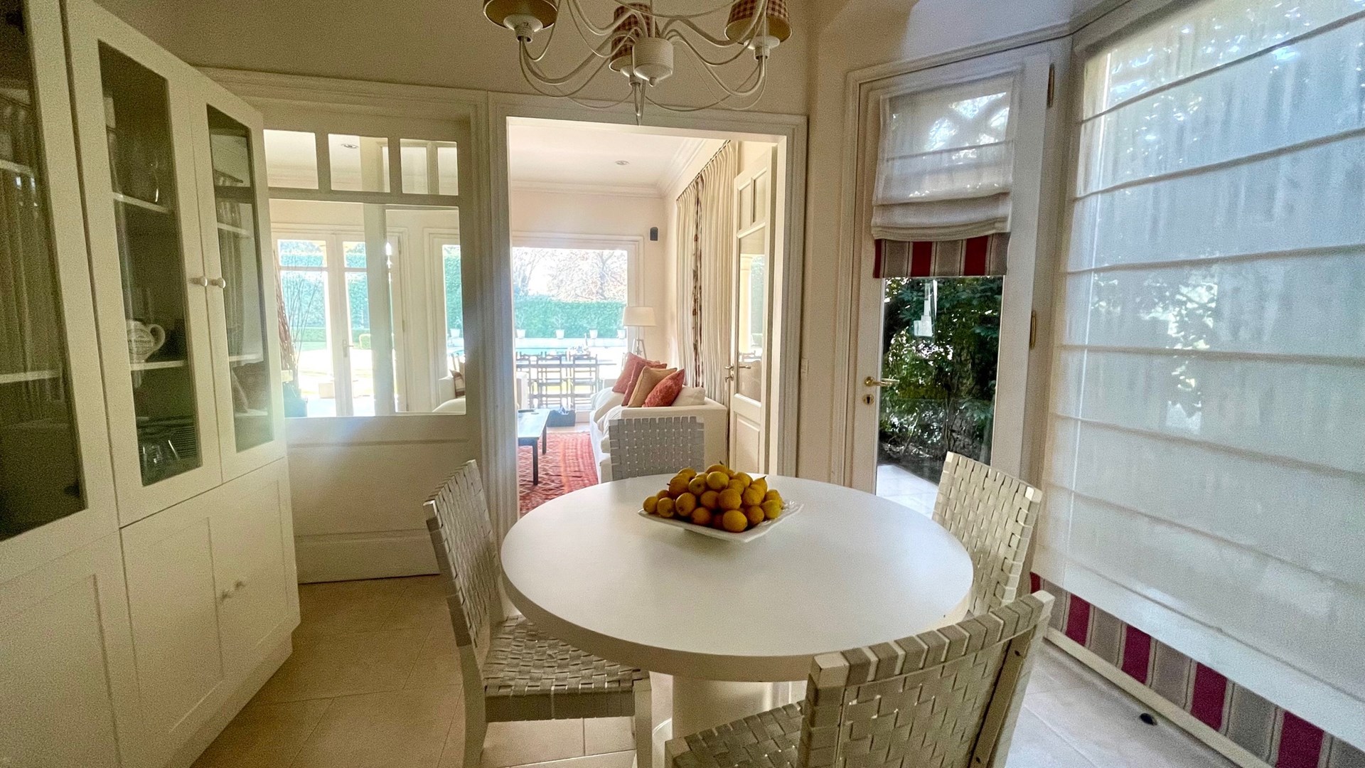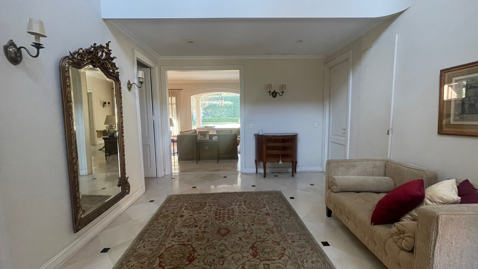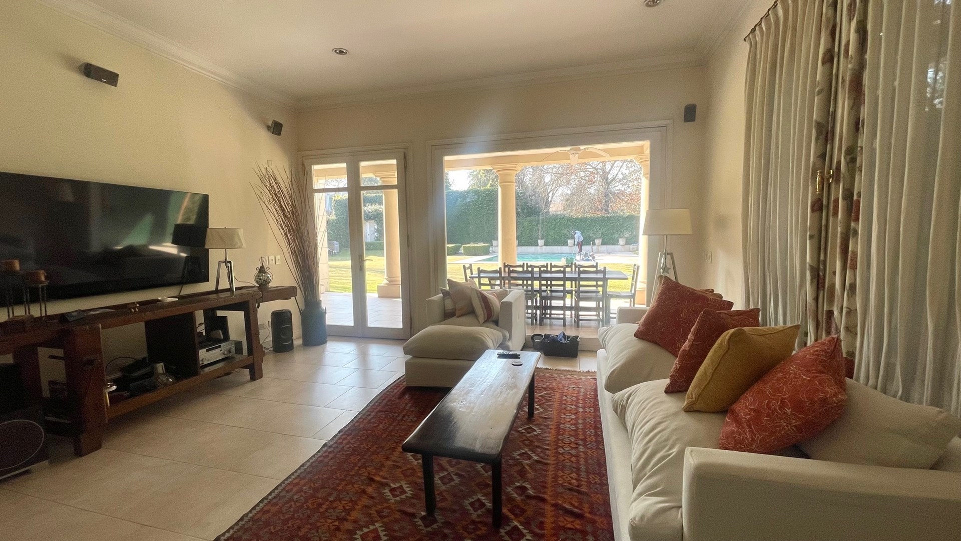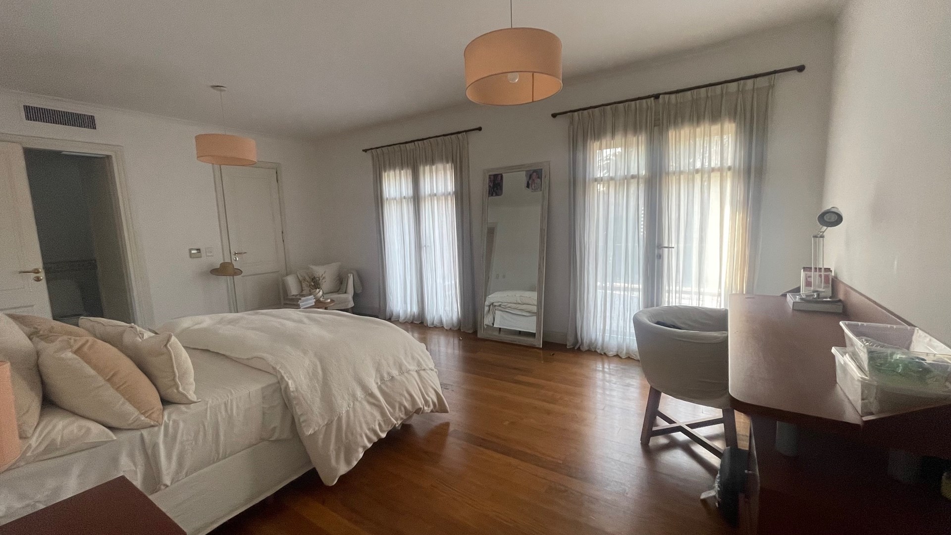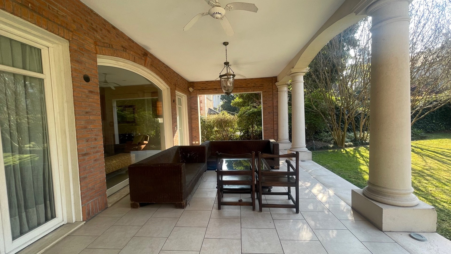 Excelente Casa en venta en Barrio Cerrado La Rotonda. Sobre un terreno de 1059 metros con vistas abiertas a excelente pulmón se implanta la casa de 600 mts cubiertos desarrollada en 3 plantas. La casa fue diseñada por el Arq. Felix. San Martín y construida por Stieglitz. Se destacan su funcionalidad y su luminosidad, con materiales nobles y sólida contrucción. Excelente acceso, cerca de todo . A 2 cuadras de salida Capitán Juan de San Martín Panamericana ramal Pilar. PB: hall de recepción y distribución con doble altura, toilette, escritorio, escalera principal, amplio living con chimenea con salida a la galería , comedor principal . Todo con pisos de mármol travertino. Area familiar: family con salida a la galería , comedor diario, toilette familiar , escalera secundaria que brinda una doble circulación muy funcional . Cocina de gran tamaño con mucho lugar de guardado y área de breakfast . Despensa y Lavadero con entrada de servicio . Tender y sala de máquinas . Cochera cubierta para 2 autos. PA: Suite principal muy grande con área de estar, baño con gran mesada con doble bacha , 2 baños, uno con ducha y otro con bañadera. 1 suite junior o habitación de huéspedes . Sobre otra ala de la casa otra suite de de gran tamaño que puede separarse en dos dormitorios . Vestidor . Otro dormitorio más con vestidor y baño . Doble habitación de servicio con su baño . Pasillo con mucho placard de guardado .En le 3 er piso gran playroom con baño . Exterior: Galería techada a lo largo de toda la casa, parrilla , pileta climatizada con filtro automático, con sol durante todo el día, solarium de travertilit. Muy buen jardín con vistas abiertas. Riego por aspersión automatizado. Vestuario, baño con ducha y cuarto de guardado. Generales: Calefacción por piso radiante combinada con radiadores en dormitorios .Además tiene aire acondicionado central frío calor en todos los ambientes con regulación individual . Grandes aberturas de madera doble vidrio con herrajes de calidad marca Marroncelli con postigones. Excelente mantenimiento ! Toda la información y medidas provistas son aproximadas y podrán ratificarse con la documentación pertinente. Martilleras Responsables Claudia Mascitti CMCPSI 6019 y Maria del Pilar Gentil CUCICBA 5339