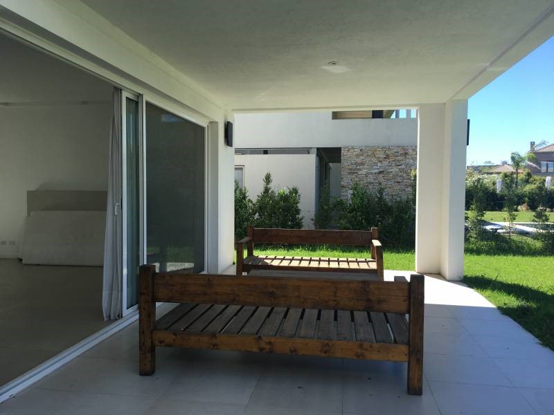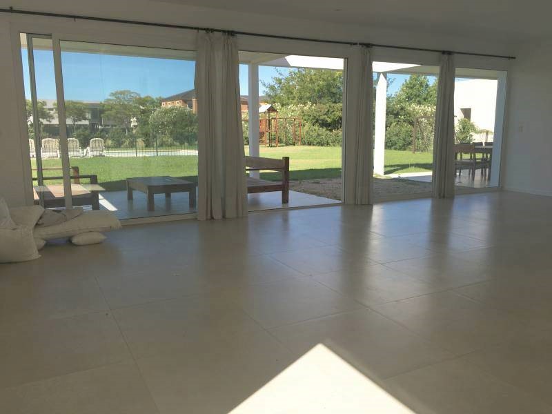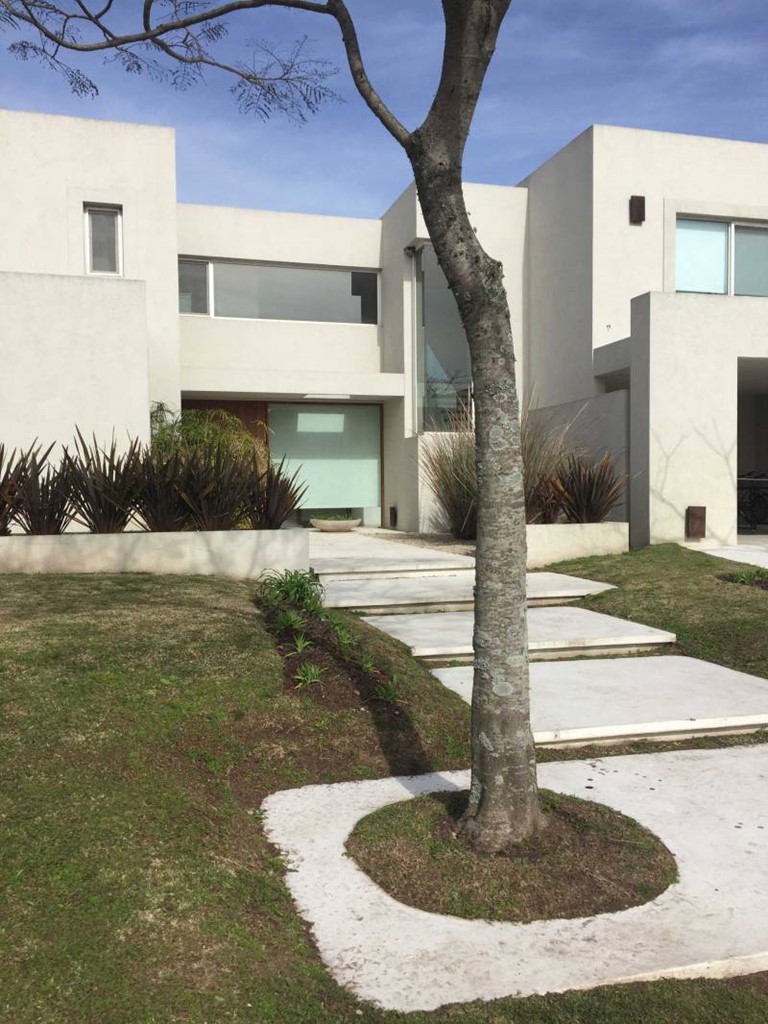 Muy buena casa en el BARRIO GOLF DE NORDELTA Lineas puras, muy bien distribuida Hall de acceso con amplio placard de recepción, escritorio , toilette, living comedor, cocina con comedor diario, cocina con isla y entrada independiente desde cochera, lavadero con entrada independiente. Dormitorio de servicio con baño y placard Cocina don isla de Marmol de carrara, lugar para lavavajillas, anafe y horno empotrado En planta baja porcelanato 1 m x 1m opaco Galeria para dos autos Aires acondicionados en todos los ambientes Planta alta: family, placard en circulacion, dormitorio principal con placard y vestidor, baño con hidromasaje y ducha, receptáculo de inodoro y bidet Dos dormitorios mas comparten un baño, ubicados al contrafrente Otro dormitorio en suite al frente Pisos de madera en planta alta Iluminacion cenital en los baños baranda de blindex en escalera Escalera de porcelanato con nariz de madera Galeria exterior compartimentado como para armar un comedor y un living Pileta con playa húmeda ubicada al fondo del lote