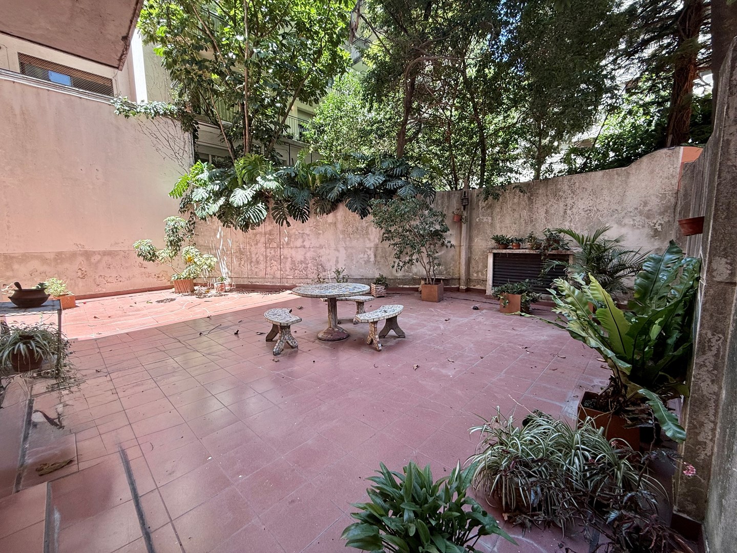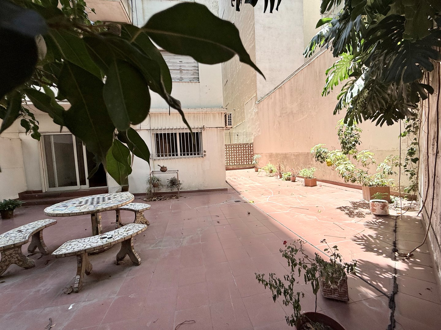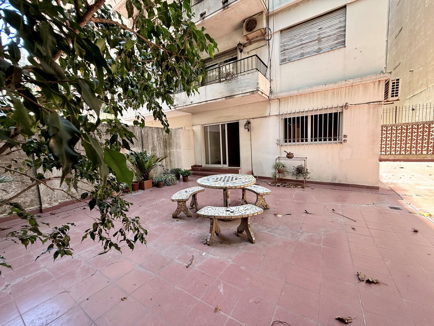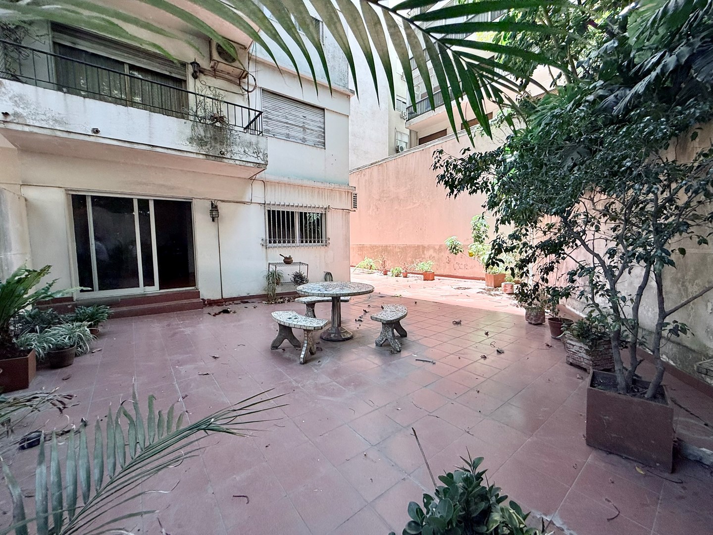 El patio a contrafrente rodea todo el departamento. Todos los ambientes al exterior con ventanas.