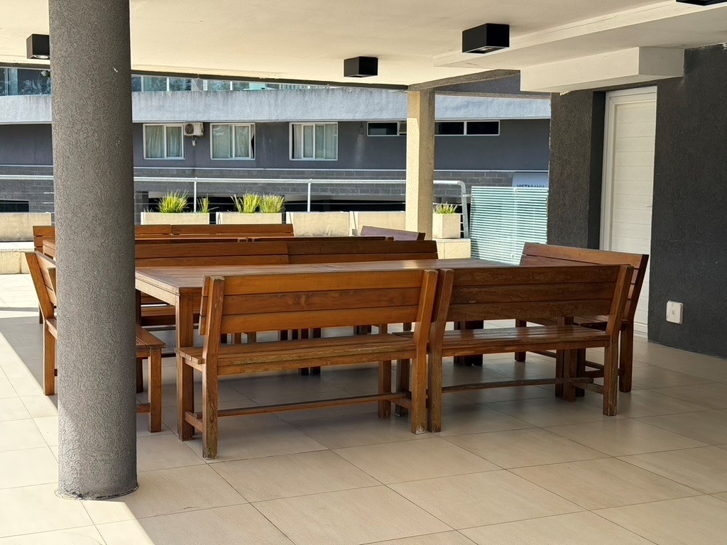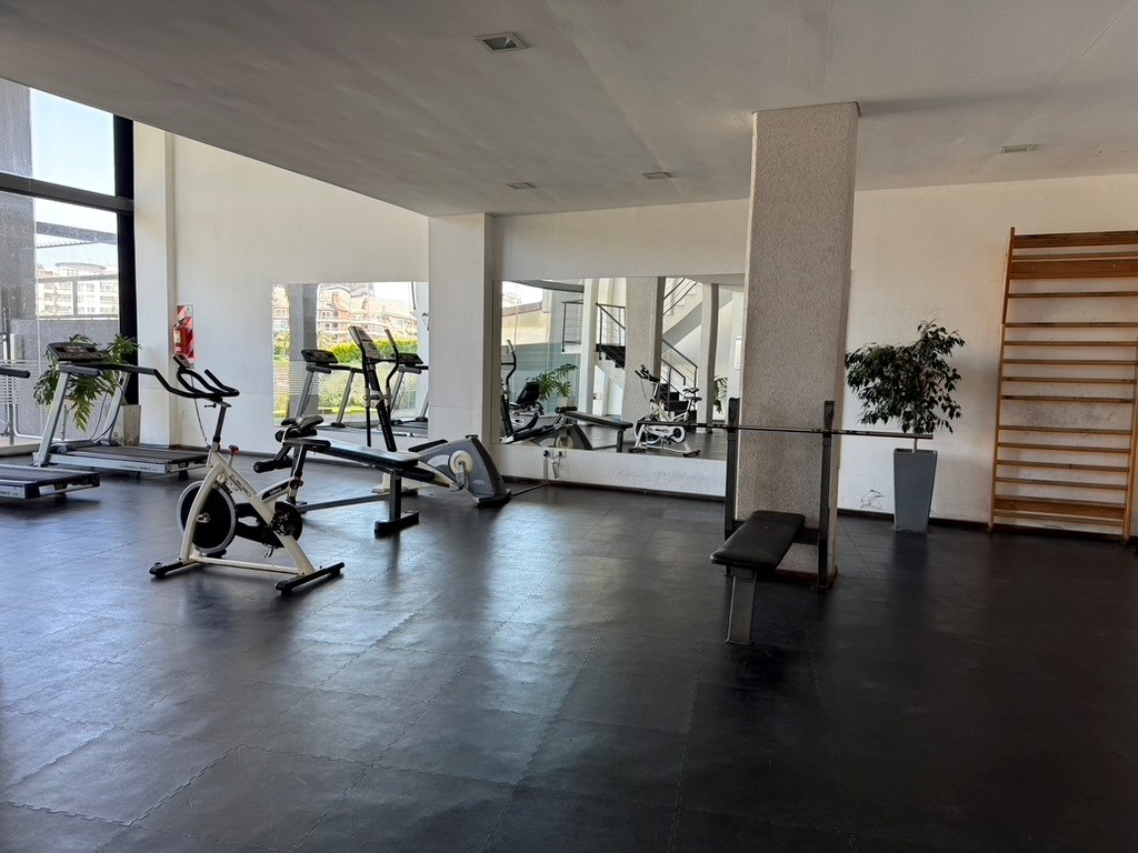 Edificio con pileta cubierta y otra pileta descubierta. Gimnasio, sala de relax, sauna, vestuarios. Parrilla con mesas.